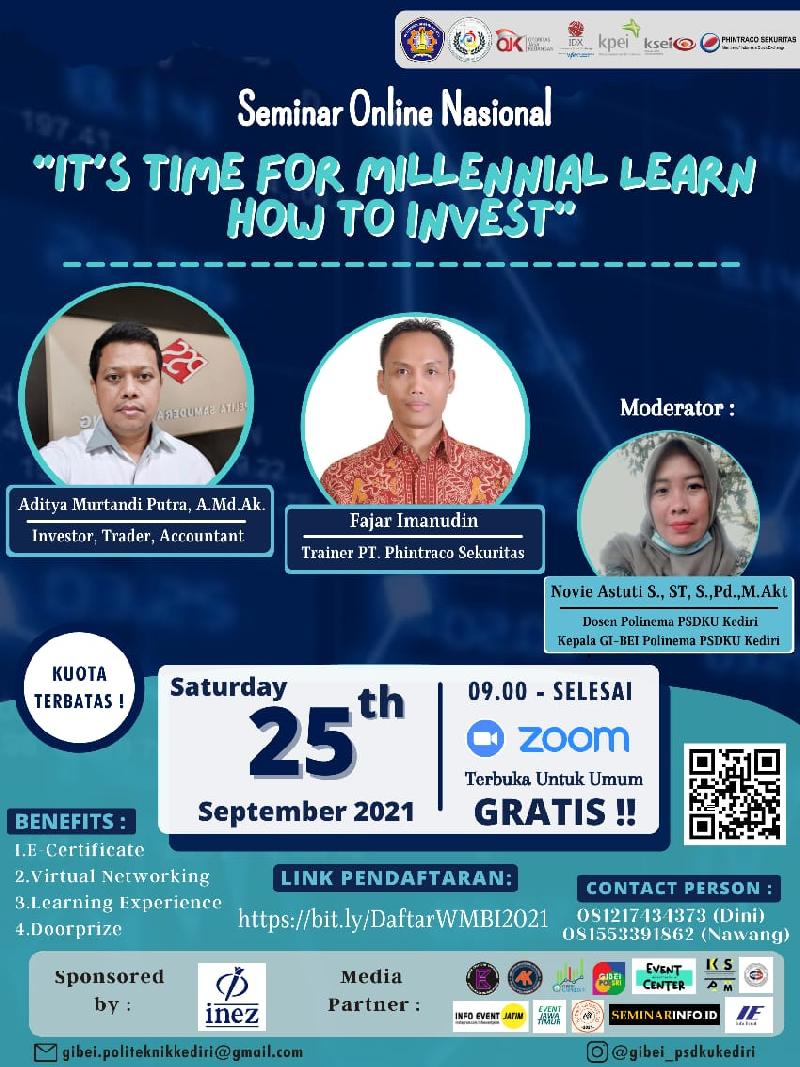 Seminar Online Nasional dengan tema “It’s Time For Millenial Learn How To Invest"