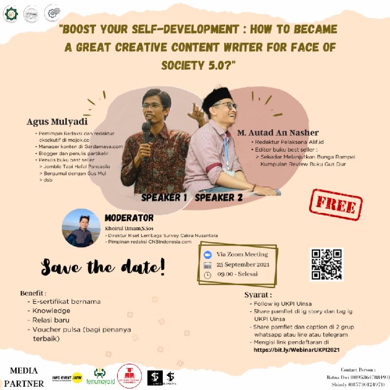 #webinar #webinarcontentwriter #contentwriter #eventkampus #eventkampussurabaya #webinargratis #webinarnasional #webinars #gratis #webinarsertifikat #contentwriter #webinarfree #webinar2021 #webinaronline #eventmahasiswa #infoseminaronline #webinarmahasiswa #infomahasiswa #webinarindo #boycandra #najwashihab #penghuluanas #chairilanwar #wsrendra #aanmansyur #pramoedyaanantatoer