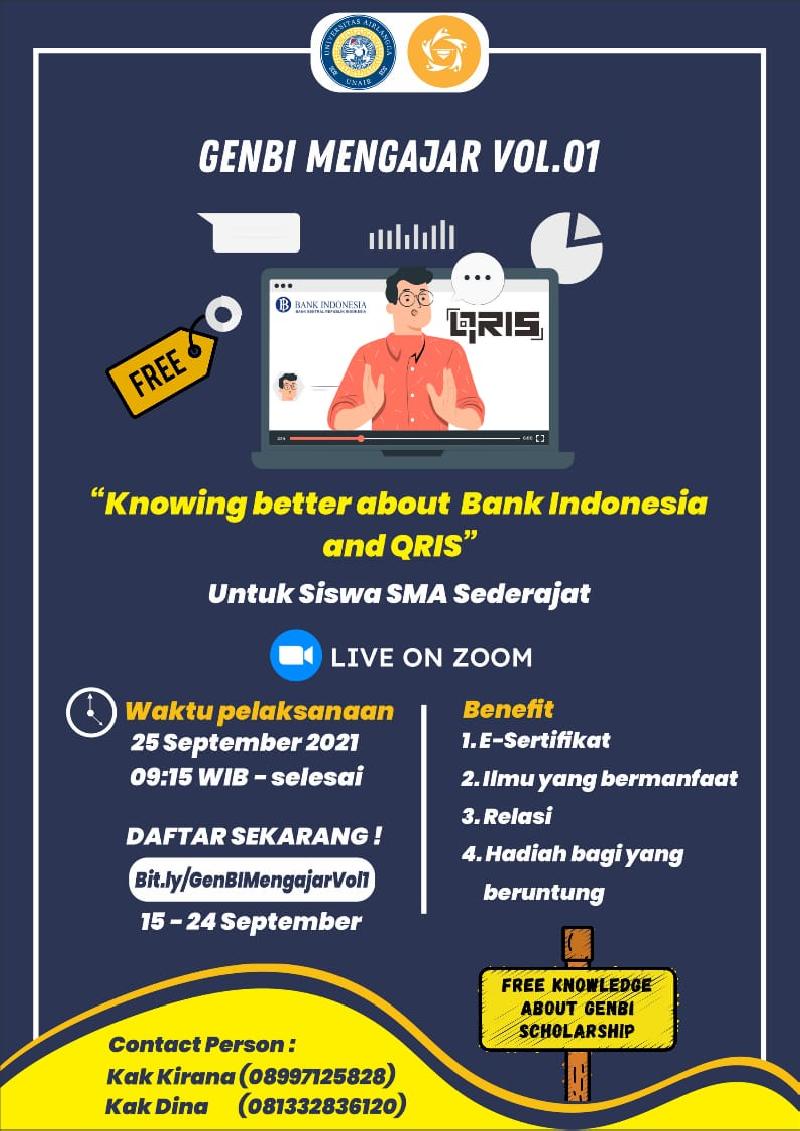 Genbi Unair dengan bangga mempersembahkan Genbi Mengajar Vol.01 untuk adik-adik Sekolah Menengah Atas (SMA) se-Indonesia lohh!!! Bagi adik-adik yang tertarik untuk mengenal lebih dalam tentang Bank Indonesia, let’s join us!!!