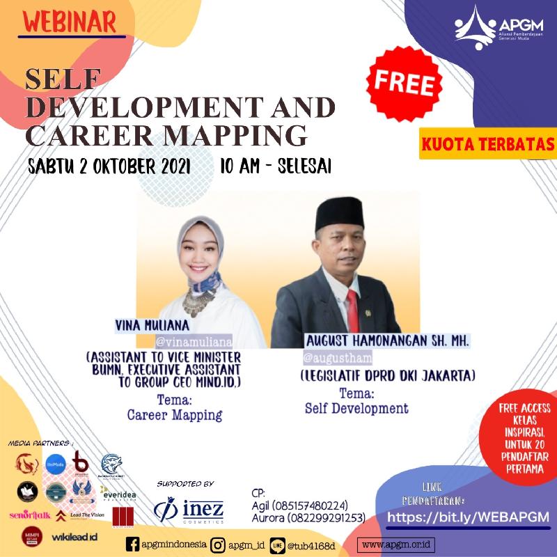 ingin berkarir di masa muda, tapi masih bingung dengan pilihan kamu? Yuk bergabung di webinar APGM yang akan bahas masalah karier kamu di masa depan bersama dengan para ahli dalam career mapping dan self development.