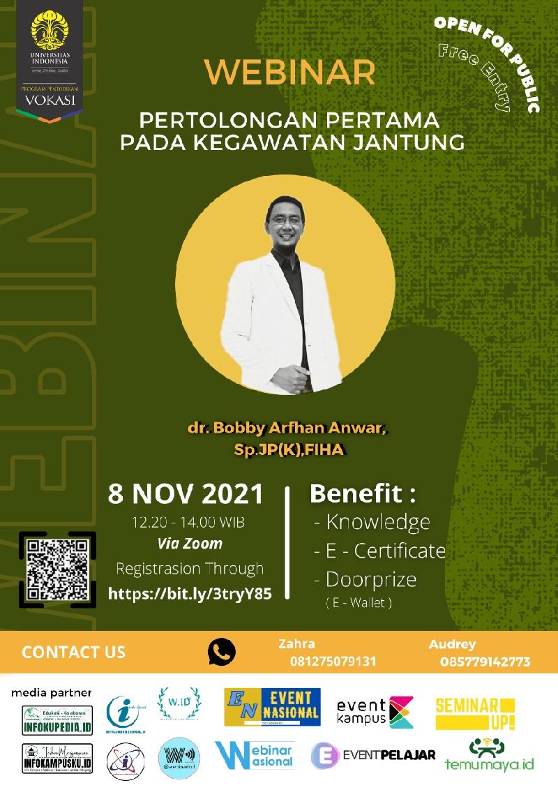 Apakah kalian pernah baca berita-berita orang yang meninggal karena serangan jantung atau pernah merasakan keluarga, saudara, tetangga yang meninggal karena serangan jantung? Dan kalian sedih karena tidak bisa menolongnya. Nah, kalian akan mendapatkan jawabannya di webinar "Pertolongan Pertama Pada Kegawatan Jantung", pada :