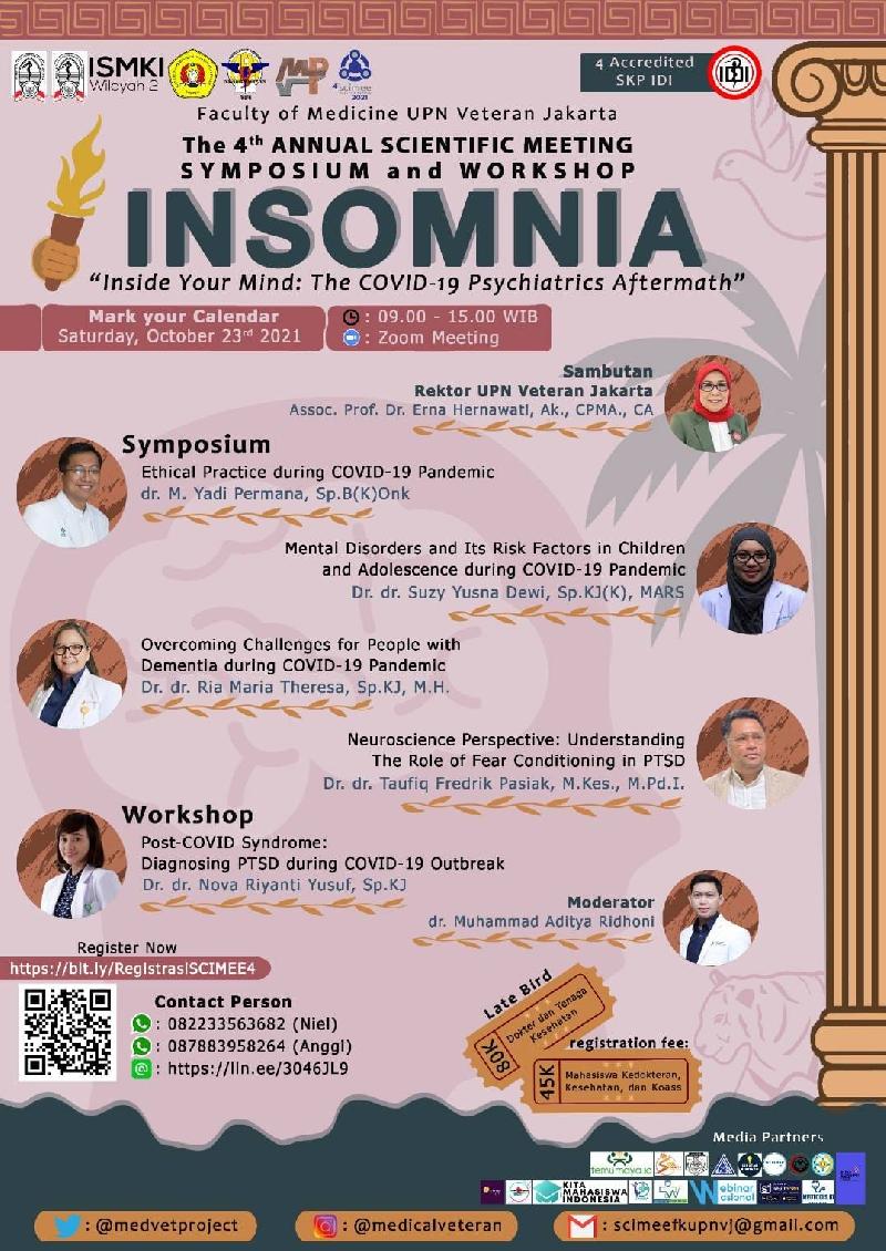 Hey, warriorBEM FK UPNVJ proudly announce that the Registration for LATE BIRD PHASE of [Scientific Meeting 4.0: INSOMNIA] is now open from 13th of September - 22nd of October 2021
