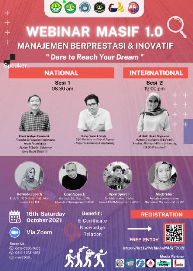 Character Education International & National Webinar MASIF (Manajemen Berprestasi dan Inovatif) 1.0 : "Dare to Reach Your Dream"