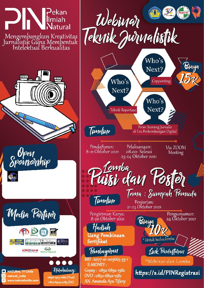 Kali ini kami membawakan sebuah event spektakuler, yaitu Pekan Ilmiah Natural (PIN) yang mengusung tema "Mengembangkan Kreativitas Jurnalistik Guna Membentuk Intelektual Berkualitas".