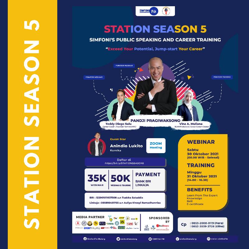 Persaingan di dunia kerja makin ketat nih sobat muda. Kamu udah tahu belum kalo public speaking sangat dibutuhin di dunia kerja? Pengen tau gak sih interview hack biar lolos perusahaan impian kamu? Atau pengen CV dan linkedIn kamu bisa dilirik HRD? Are you ready to step up and exceed your professional skill? STATION SEASON 5 bakal jadi solusi buat bantu siapin karirmu jadi lebih baik!