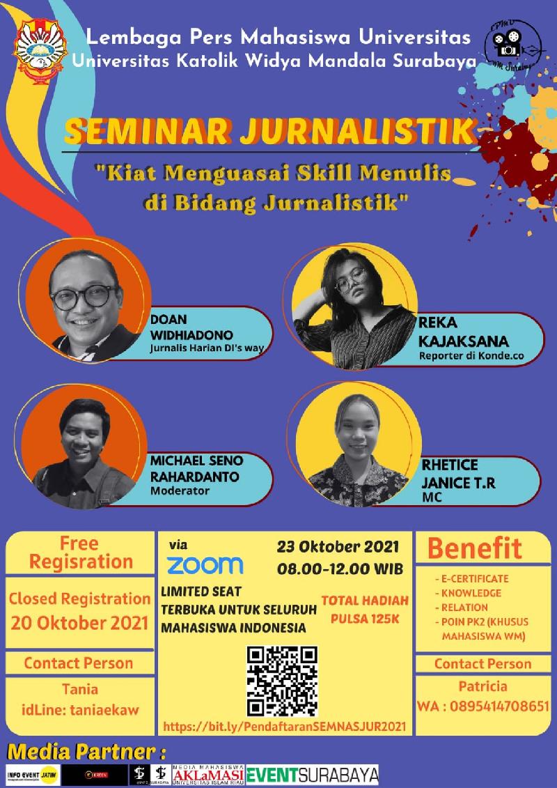 Seperti tahun-tahun sebelumnya, tahun ini LPMU-UKWMS hadir dengan Seminar Nasional Jurnalistik bertema "Menulis: Kiat Menguasai Skill Menulis dibidang Jurnalistik"