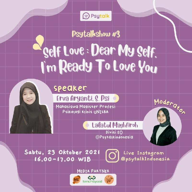 Nah pertanyaan-pertanyaan tersebut akan terjawab dalam IG Live #3 @psytalkindonesia yang akan mengupas tuntas soal "Dear Self Love, I'm Ready To Love You"