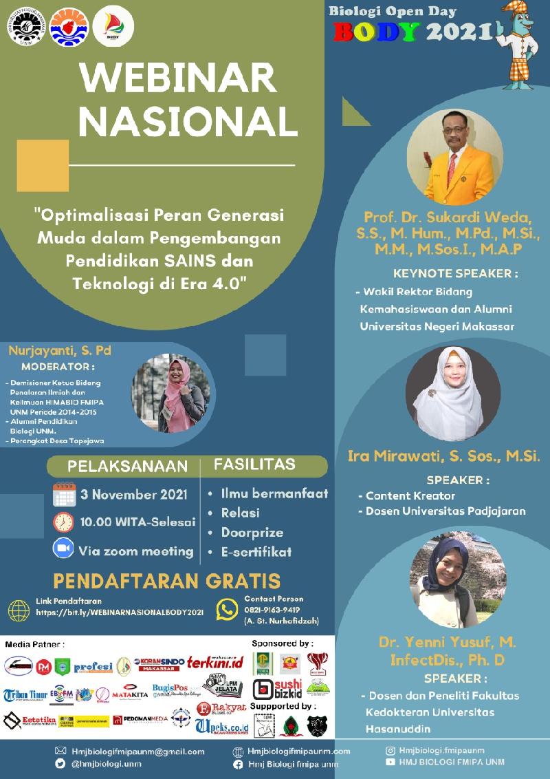 Salah satu peran pemuda dalam membangun bangsa dengan turut berpartisipasi pada pemngembangan pendidikan dan Saintek, maka dari itu diadakan webinar nasional dengan