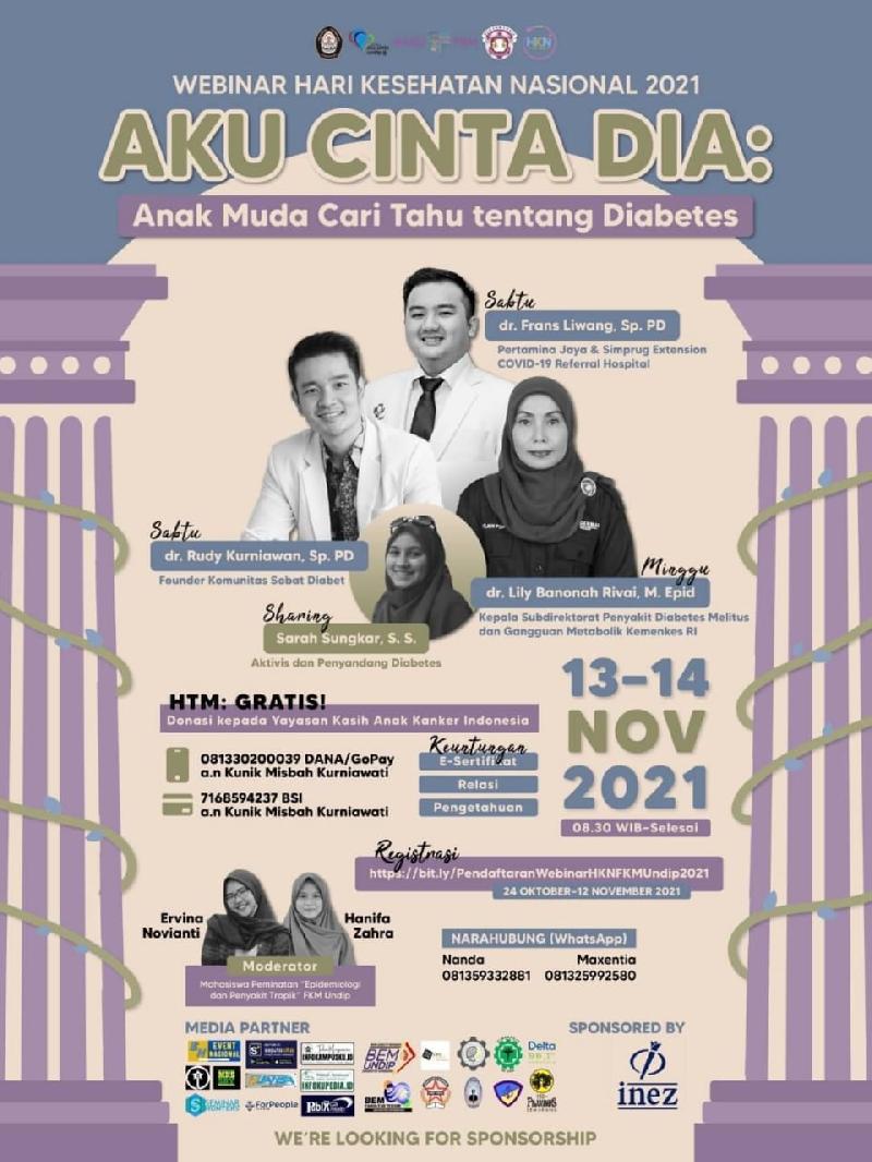 Perayaan Hari Kesehatan Nasional tahun ini akan diisi dengan webinar yang bertemakan “AKU CINTA DIA: Anak Muda Cari Tahu Tentang Diabetes”