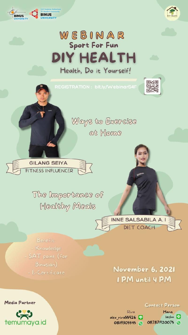 Kami dari TFISC BINUS University akan mengadakan webinar seputar olahraga dan makanan sehat di Sport4Fun 2021 yang berjudul: