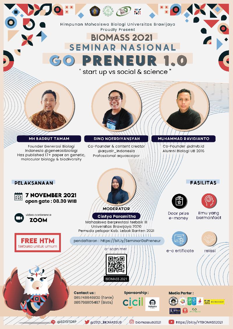 Himpunan Mahasiswa Jurusan Biologi Universitas Brawijaya dengan bangga mempersembahkan SEMINAR KEWIRAUSAHAAN BIOMASS 2021