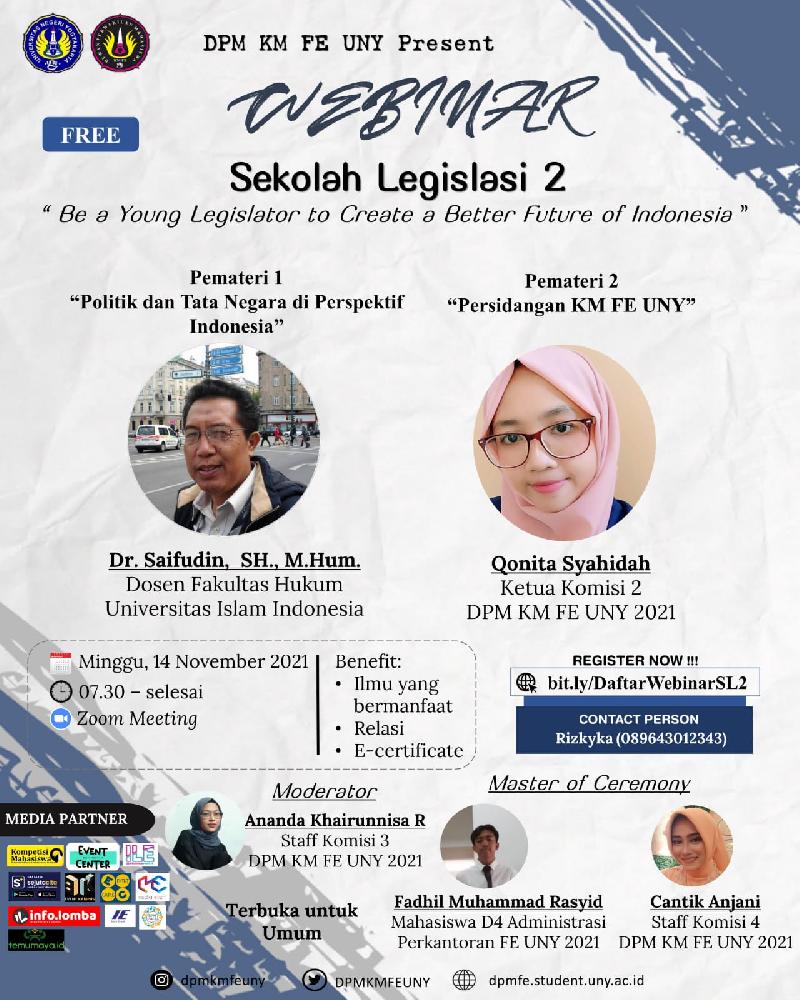 #DPMKMFEUNY2021 #SekolahLegislasi2 #Komisi2DPMFEUNY #Webinar #Persidangan KM FE UNY #Politik&Tatanegara Indonesia #BeaYoungLeader #eventmahasiswa #mahasiswa #VivaLegislatifa #BersamaLebihBermakna