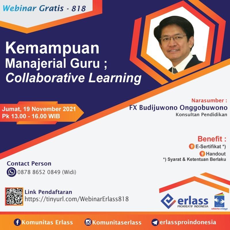 Peran guru sangat penting dalam mensukseskan proses pembelajaran terutama dalam menggunakan metode pembelajaran yang tepat. Pembelajaran kolaboratif yang mengajak siswa belajar dan membagi beban bersama dengan perlahan dapat memberikan kesempatan kpada siswa dalam berkarya. Yuk simak langkah-langkahnya dalam webinar “Kemampuan Manajerial Guru; Collaborative Learning” bersama Bapak FX Budijuwono Onggobuwono.