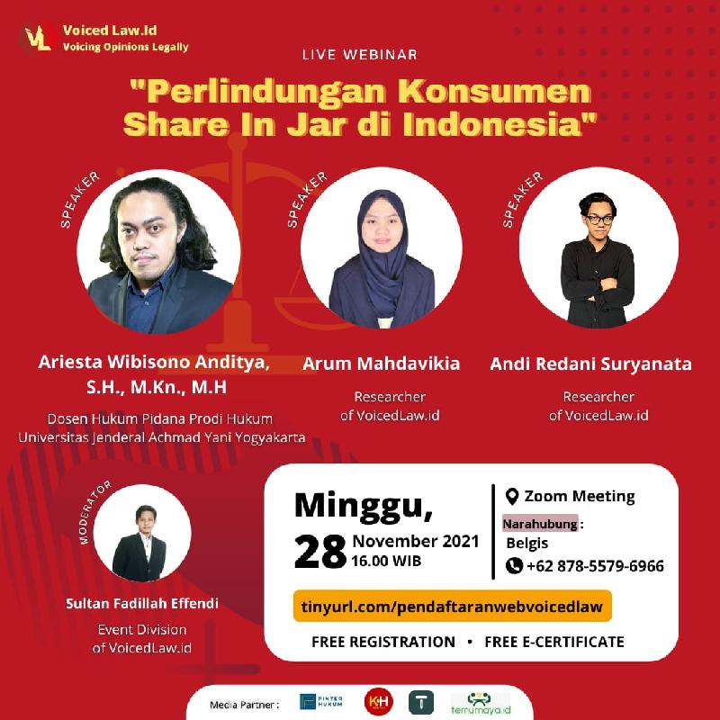 Voicedlaw.id proudly present : - Live Webinar - yang mengangkat tema "Perlindungan Konsumen Share In Jar di Indonesia”.