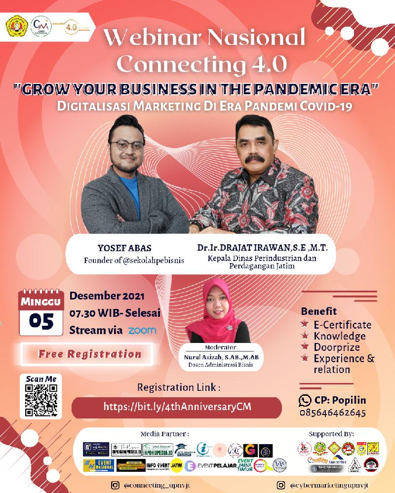 In order to Celebrate 4th Anniversary of Cyber Marketing. We hold webinars in the field of marketing, with interesting theme "Grow Your Bussines In The Pandemic Era"