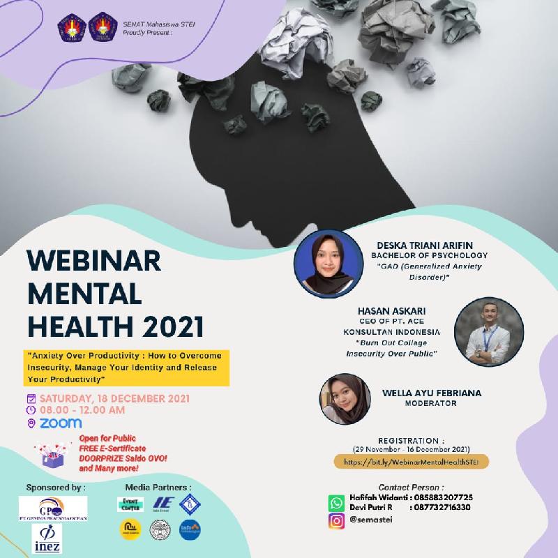 Halo kawula muda! Kami senat mahasiswa STEI akan mengadakan webinar seputar anxiety loh! webinar ini terbuka untuk umum ya