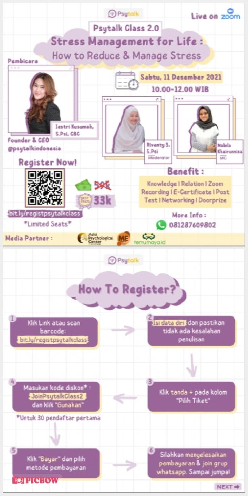 Yuk! Cari tahu lebih dalam di Psytalk Class 2.0 : "Management Stress For Life: How to Reduce & Manage Stress"!