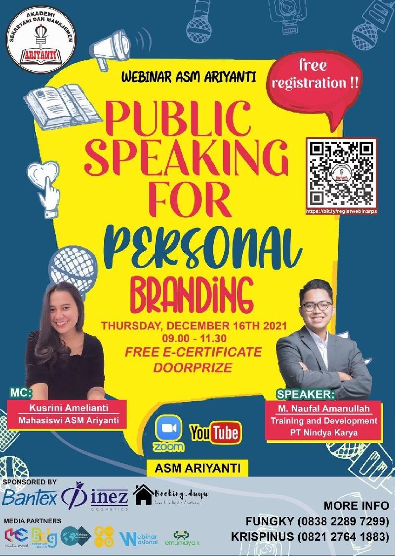 Melalui webinar ini kamu akan mendapatkan pengetahuan yang penting mengenai "Public Speaking For Personal Branding"