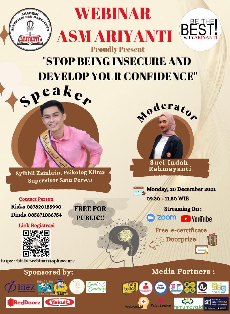 Insecure sekarang menjadi salah satu permasalahan dalam diri kita. Maka dari itu mari kita ubah insecure menjadi bersyukur. Akademi Sekretari dan Manajemen Ariyanti mempersembahkan :