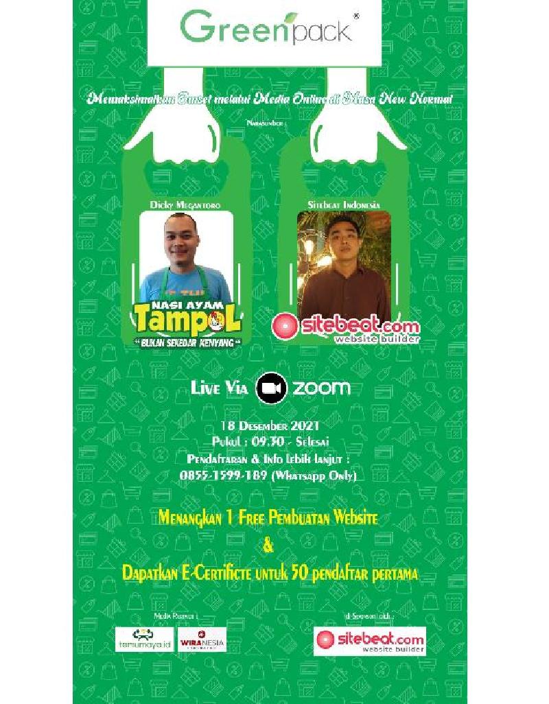 "Memaksimalkan Omset Melalui Media Online di Masa New Normal" tanggal 18 Desember 2021. Menangkan juga hadiah menarik yaitu gratis pembuatan website selama 3 bulan dari Sitebeat Indonesia.