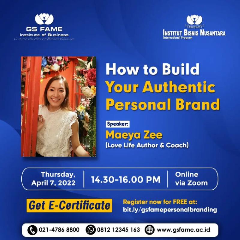 Kamu masih bingung apa itu personal branding? Mau tau cara membangun personal branding yang baik? Yuk, ikuti webinar GS FAME: “How to Build Your Authenthic Personal Brand” bersama Guest Speaker kita @maeya.zee (Love Life Author & Coach).