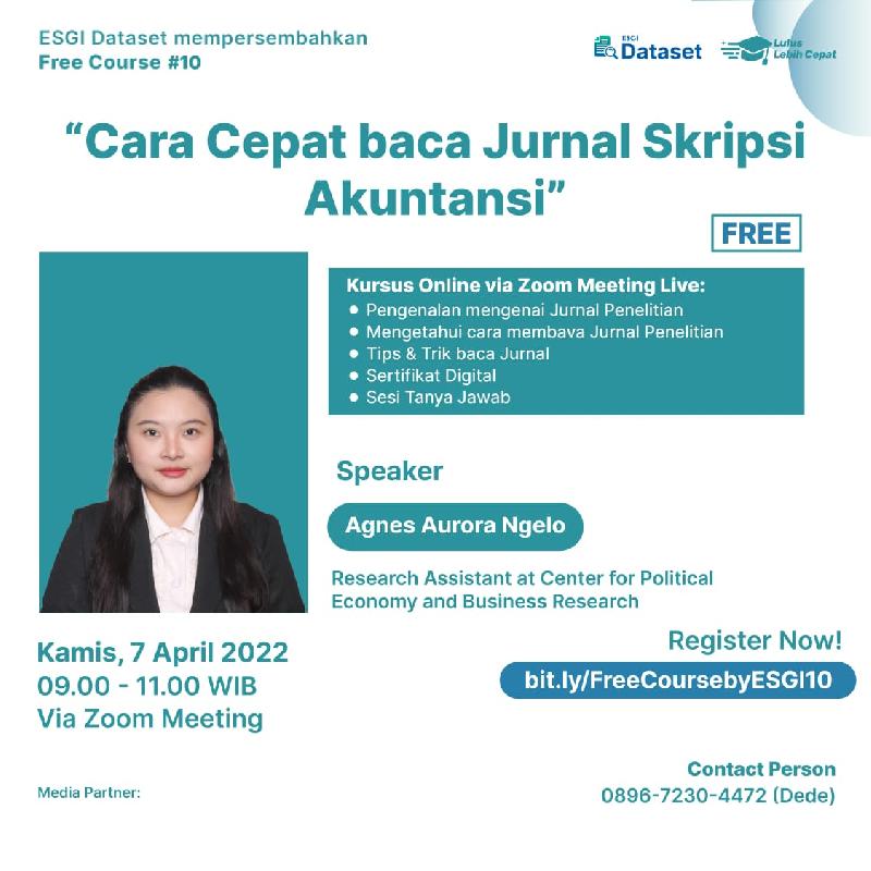 ”Cara Cepat Baca Jurnal Skripsi Akuntansi", dan dapatkan Voucher dari ESGI Dataset, juga e-certificate!