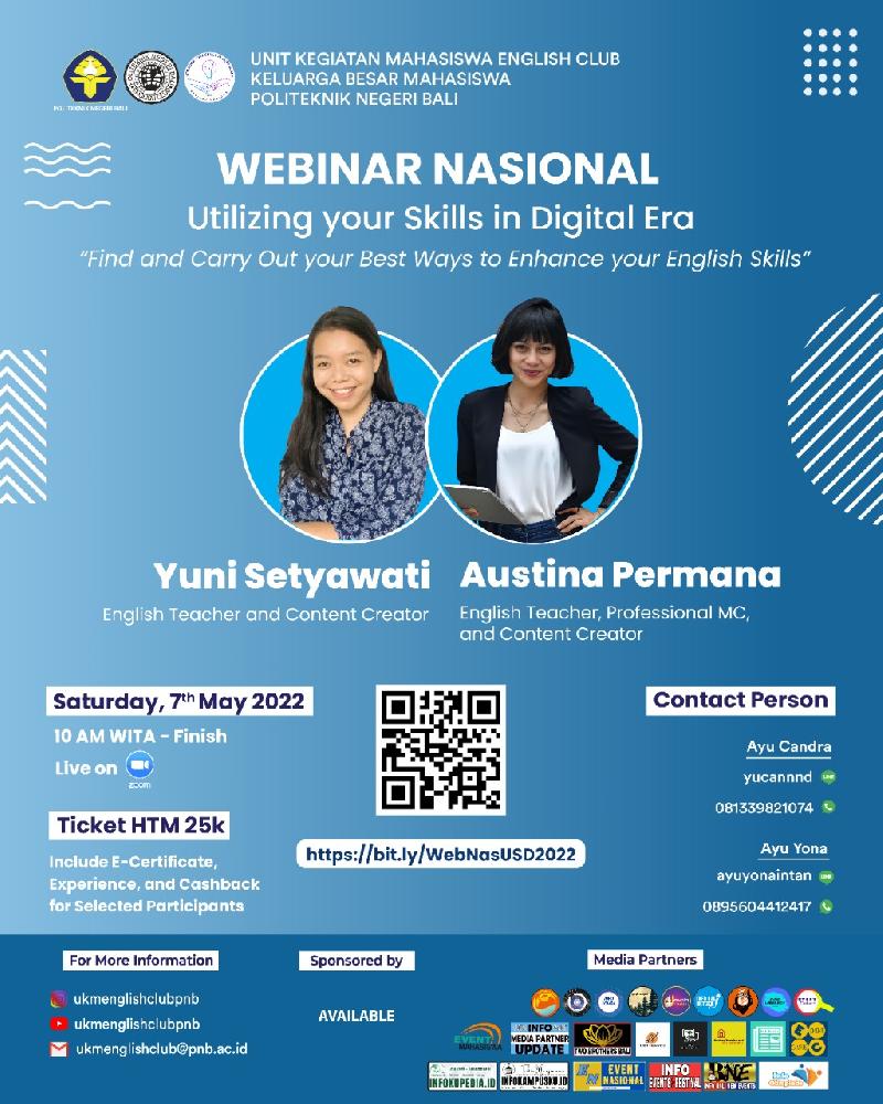 Webinar Nasional Utilizing your Skills in Digital Era (USD) with the theme "Find and Carry Out your Best Ways to Enhance your English Skills"