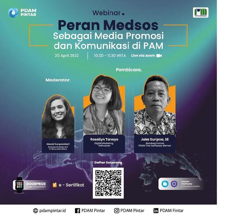 Ikuti Webinar bersama Bima Sakti Alterra dan PDAM Tirta Sembada Sleman dengan pembahasan tentang "Peran Media Sosial Sebagai Media Promosi dan Komunikasi PAM"