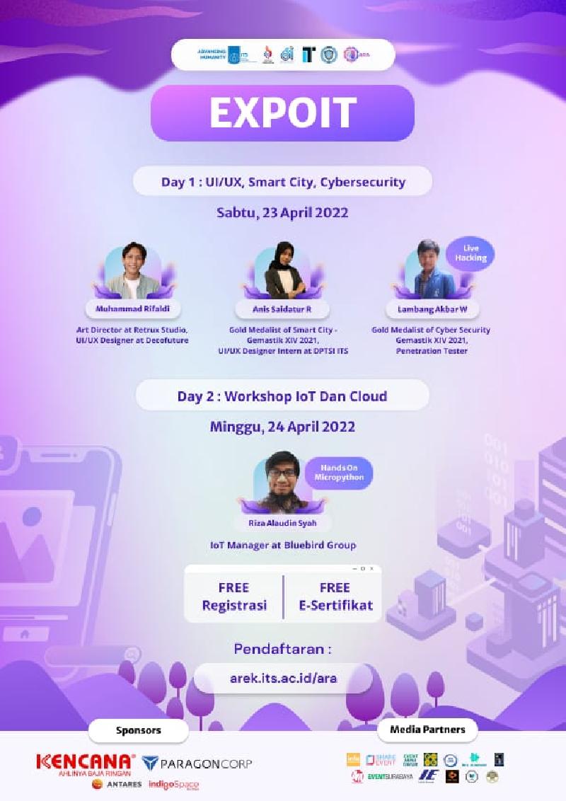 ExpoIT merupakan Exhibisi online untuk memperkenalkan karya dari mahasiswa Teknologi Informasi ITS dan komunitas lokal di bidang Teknologi Informasi. Setiap pemilik karya akan menjelaskan mengenai hasil karyanya beserta cara kerjanya.
