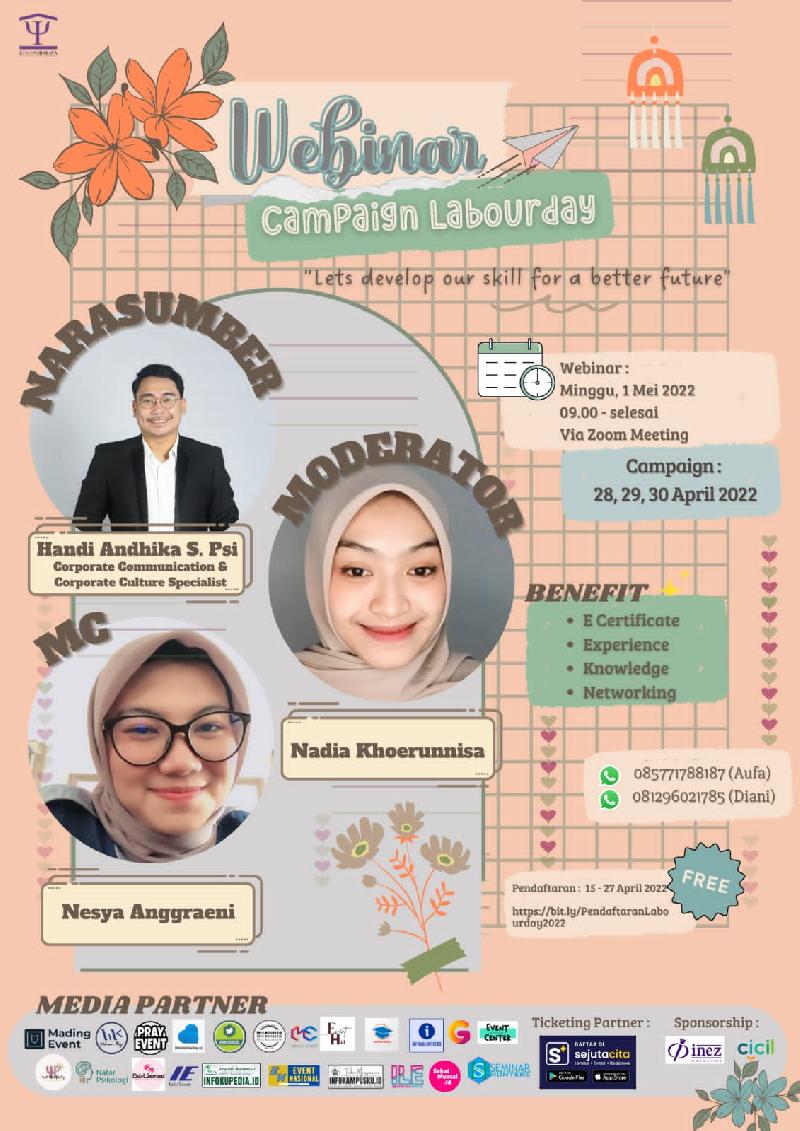 Kira- kira nantinya di Webinar Campaign Labour ini ngapain sih? Nantinya temen- temen semua akan mengikuti campaign mengenai Hari Buruh, dan Puncak acaranya akan ada Webinar yang membahas mengenai skill apa sih yang dibutuhkan untuk para pekerja nantinya????