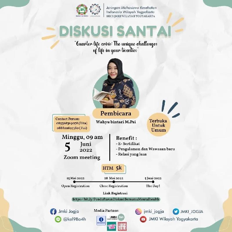 DISKUSI SANTAI QUARTER LIFE CRISIS: THE UNIQUE CHALLENGES OF LIFE IN YOUR TWENTIES