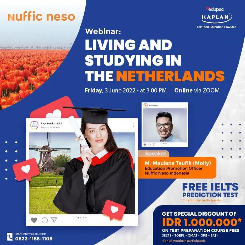 Tertarik untuk studi di Netherland?? Mau tau bagaimana suasana studi di Netherland? Yuk kita kupas tuntas bersama Kak Molly dari Nuffic Neso @studidibelanda dalam acara FREE Webinar "Living and Studying in the Netherlands"