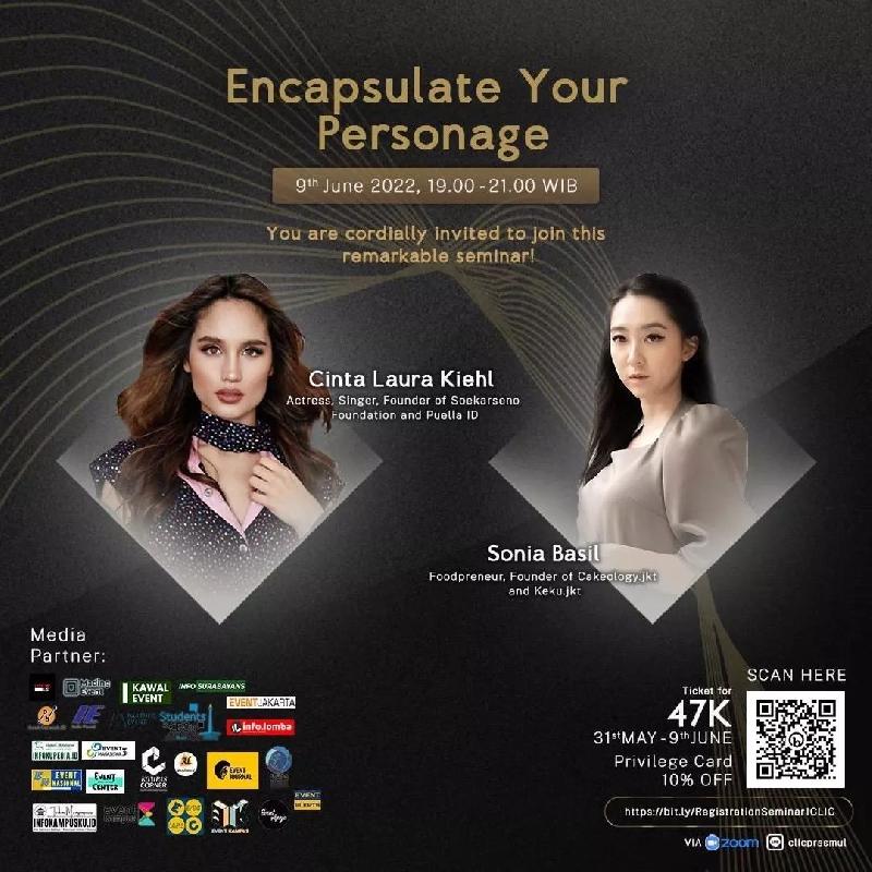 Creative seminar C.L.I.C 2022 “Encapsulate Your Personage”. Disini kita akan sama-sama mengupas bagaimana cara menerima serta mengembangkan diri untuk menjadi versi terbaik dari diri kamu lohh .