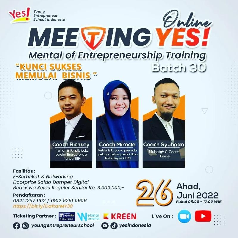Yuk ikut belajar, dengan 3 narasumber yang sangat Asyik bersama YES! dalam Program *MEETING YES!* _Langsung Chat admin dan mengisi link pendaftarannya ya_