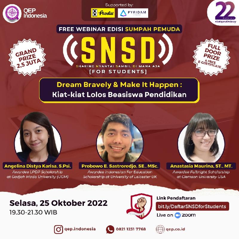 #SNSDforStudents #Beasiswa #Scholarship #Awardee #KuliahLuarNegeri #QEP #QuantumEdukasindoParadigma #WebinarGratis