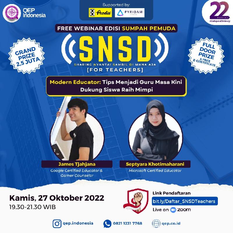 Wow.. Bapak/Ibu Guru penasaran ingin tahu segudang tips and trick ala Google dan Microsoft yang bisa dimanfaatkan dalam mengajar? Yuk ikuti free webinar dalam rangka Special Anniversary QEP ke-22 dan Hari Sumpah Pemuda dengan tema:
