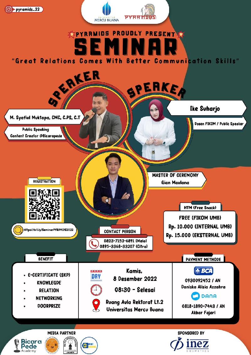 Acara seminar ini dilakukan sebagai bentuk pengembangan skill komunikasi yang nantinya bisa dijadikan alat agar seorang manusia lebih bisa bersosialisasi dan membangun relasi yang berkualitas.