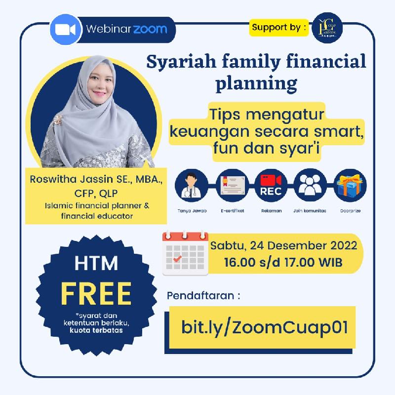 Yuk kita bahas tentang syariah famility financial planing, dimana kita akan belajar tentang mwngatur keuangan secara smart, fun dan syar'i bersama @roswithajassin (islamic financial planer dan financial educator)