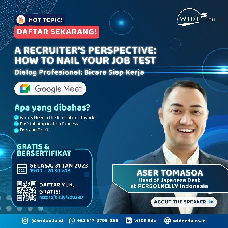 Mari kita bahas bersama Aser Tomasoa, Head of Japanese Desk di PERSOLKELLY Indonesia di Webinar "A Recruiter's Perspective: How to Nail Your Job Test".
