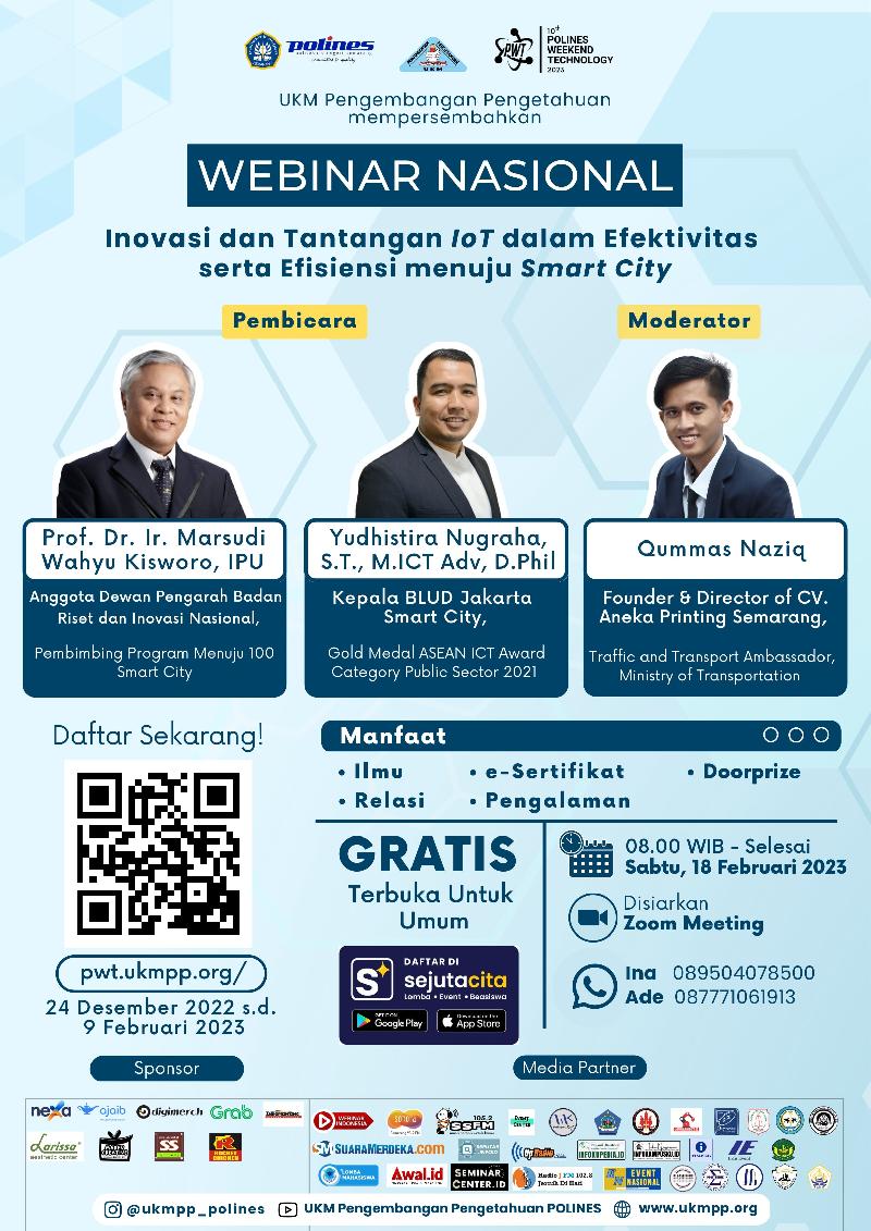 Perkembangan teknologi yang semakin pesat memunculkan sebuah konsep baru dalam sistem perkotaan. Kota dibangun dengan sebuah konsep yang dapat memudahkan kinerja masyarakat. Salah satunya adalah Konsep Smart City. Konsep yang disebut sebagai kota pintar ini merupakan konsep yang mengetengahkan sebuah tatanan kota cerdas yang bisa berperan dalam memudahkan masyarakat untuk mendapatkan informasi secara cepat dan tepat melalui penggunaan teknologi dengan sarana Internet of Things (IoT). Dapatkan pengetahuan selengkapnya dengan mengikuti Webinar ini.