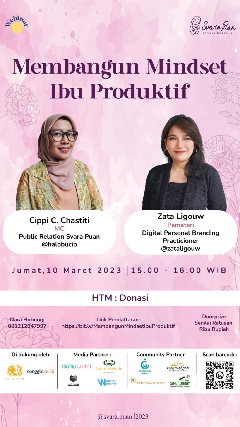 Yuk ikuti sesi talkshow bersama Zata Ligouw @zataligouw dalam webinar "Membangun Mindset Ibu Produktif"
